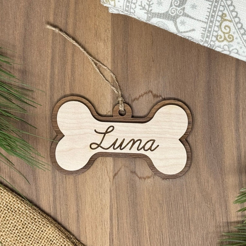 Custom Dog Name Ornament, Gift For Pets, Dog Bone Ornament, Puppy Name Ornament, Personalized Ornament, Bone shape Ornament,Dog Tags