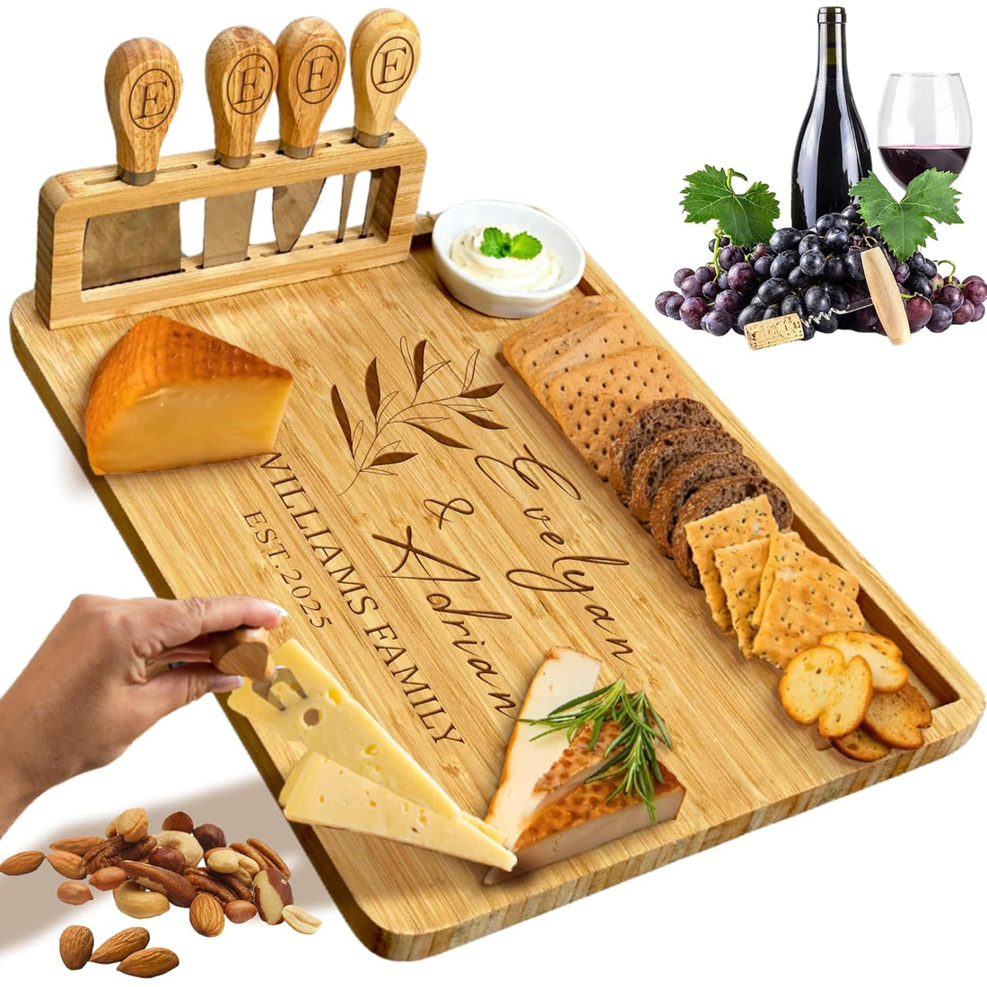 Personalized Bamboo Charcuterie Boards Cheese Board Knife Set, 13.7" x 9.8" x 0.6"