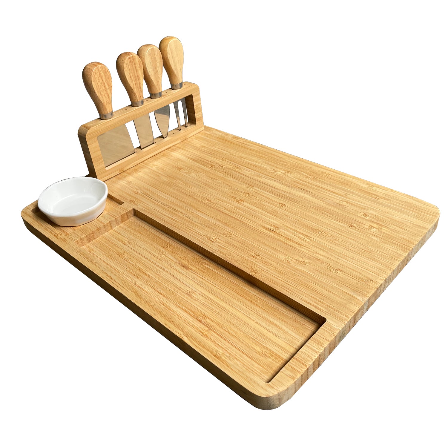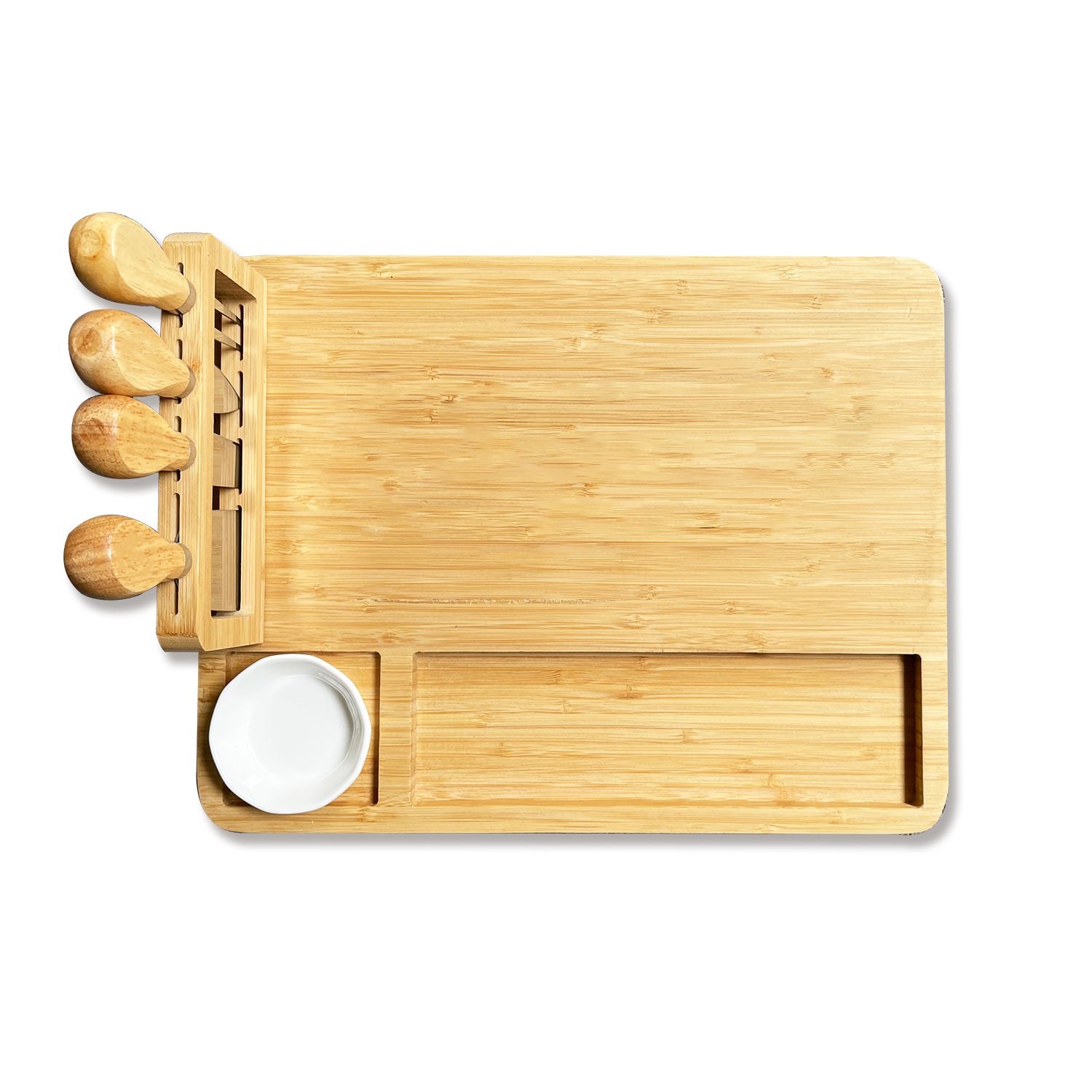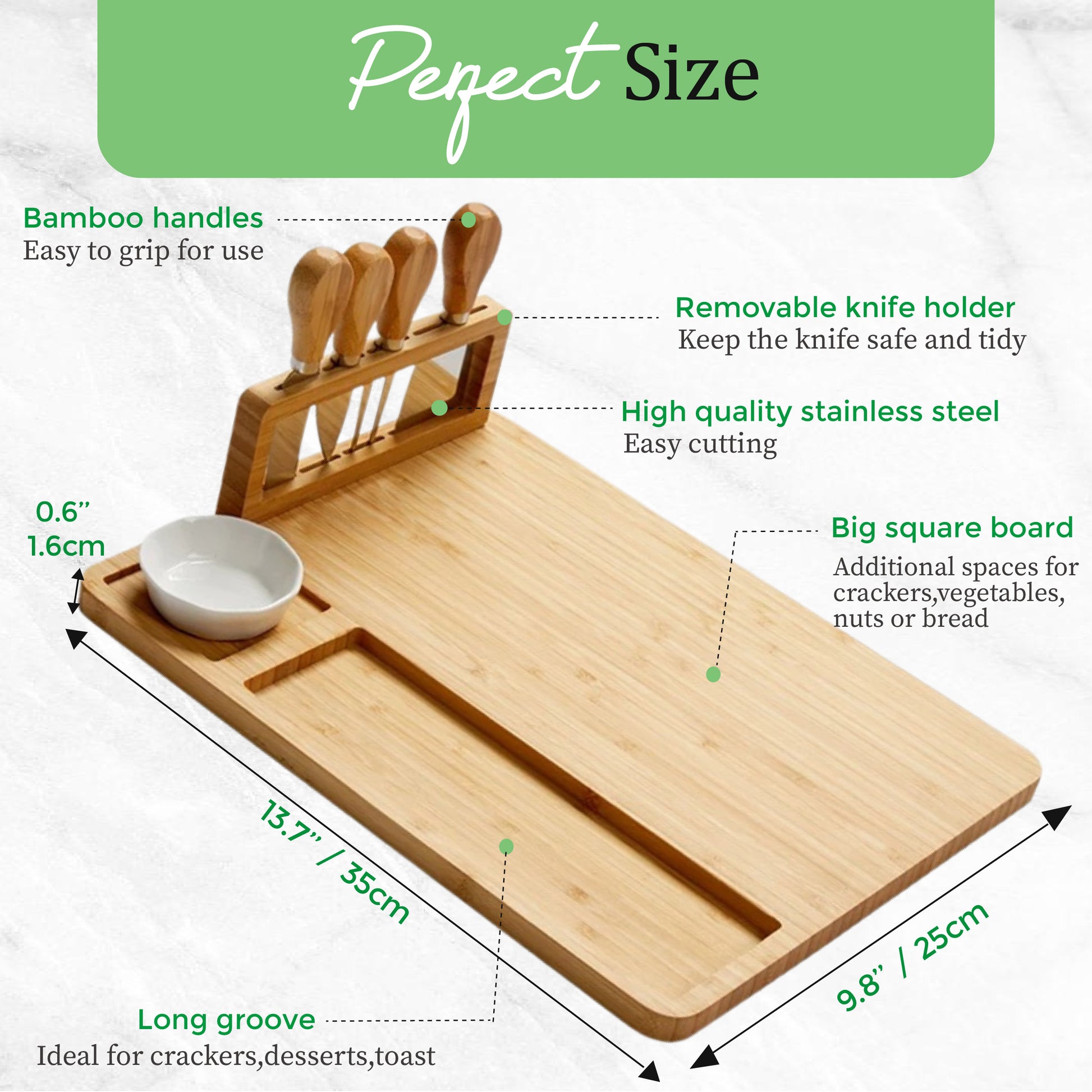 Bamboo Charcuterie Boards Cheese Board Knife Set, 13.7" x 9.8" x 0.6"