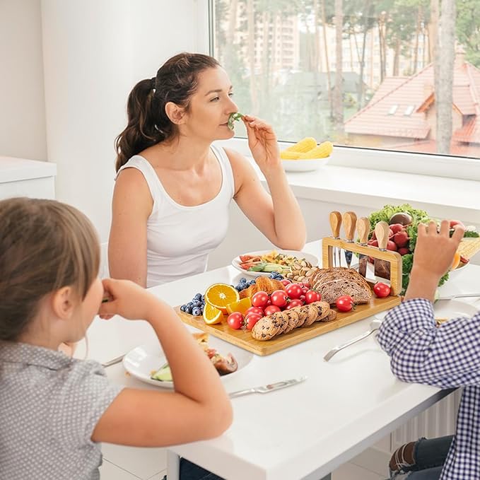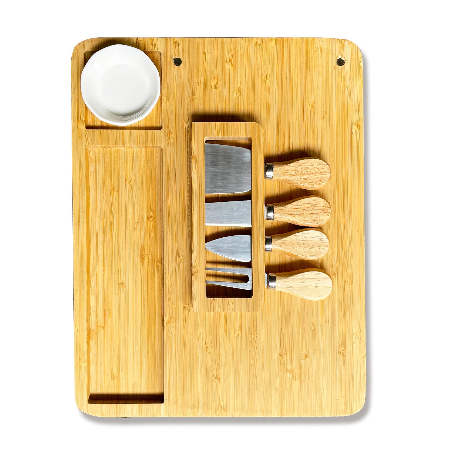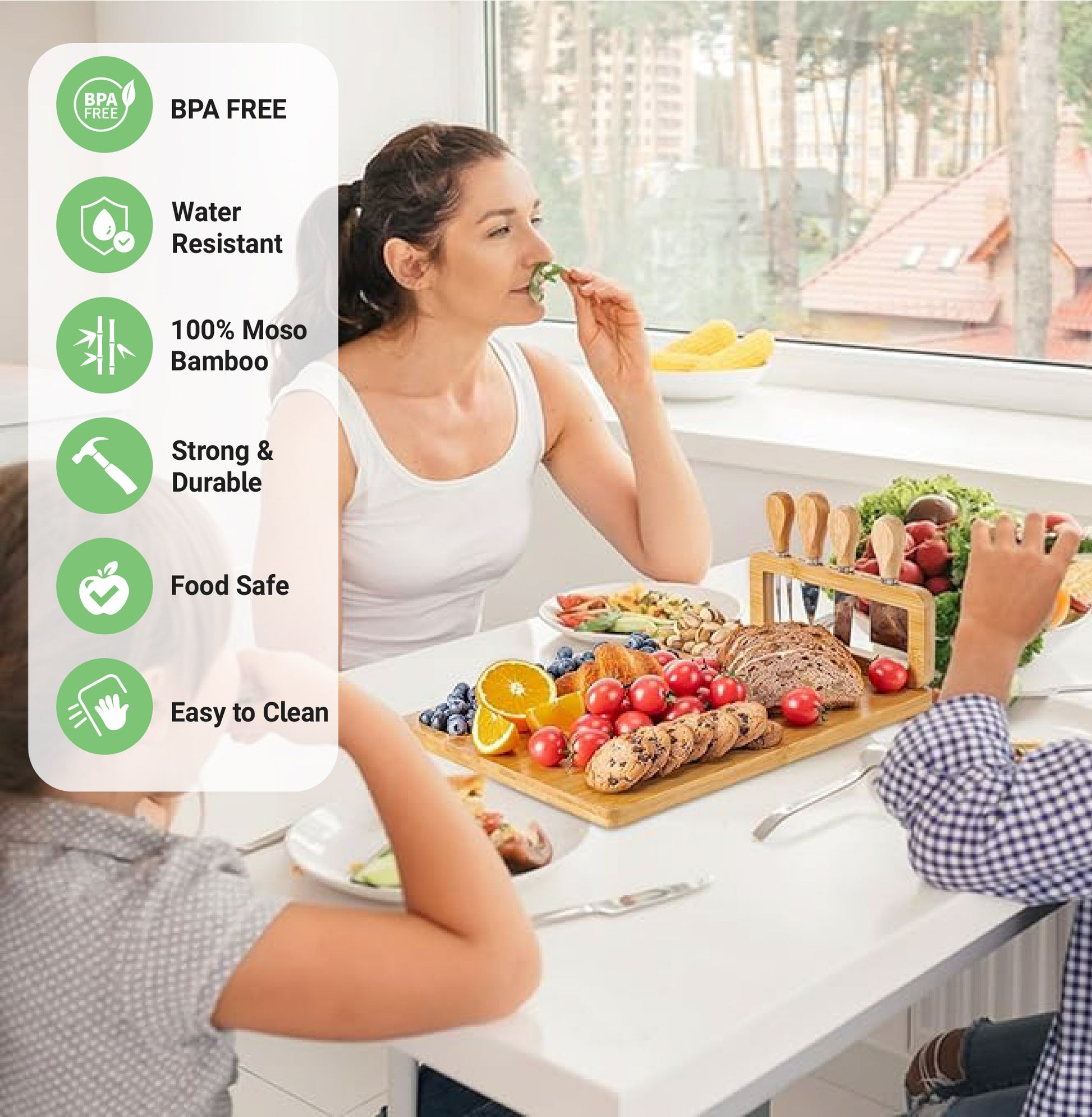 Bamboo Charcuterie Boards Cheese Board Knife Set, 13.7" x 9.8" x 0.6"