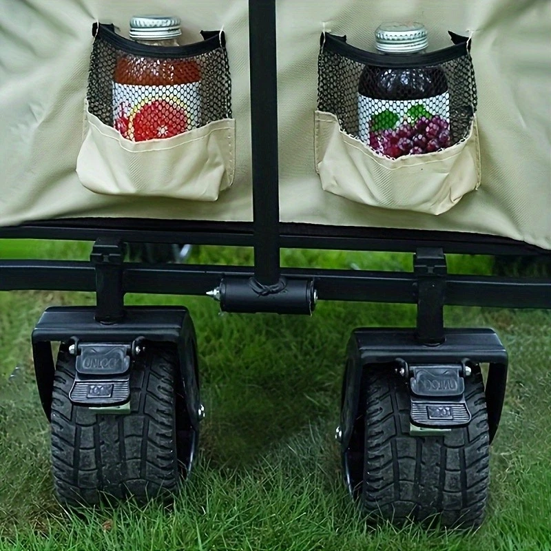 - Side Pockets: The collapsible sports wagon features large side pockets; provides extra storage space; versatile for various needs; perfect for additional gear or supplies