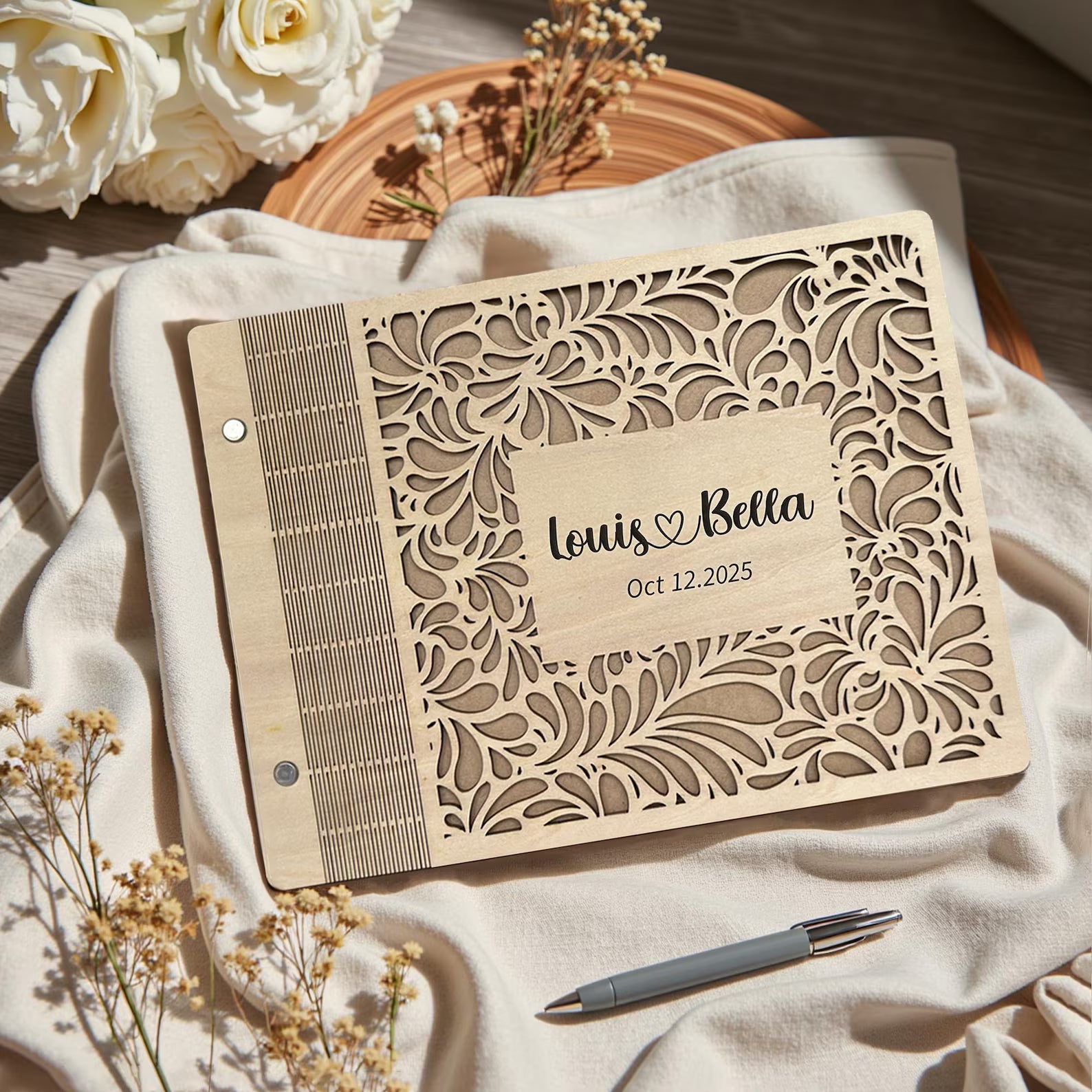 Custom Carved Wooden Wedding Guest Book