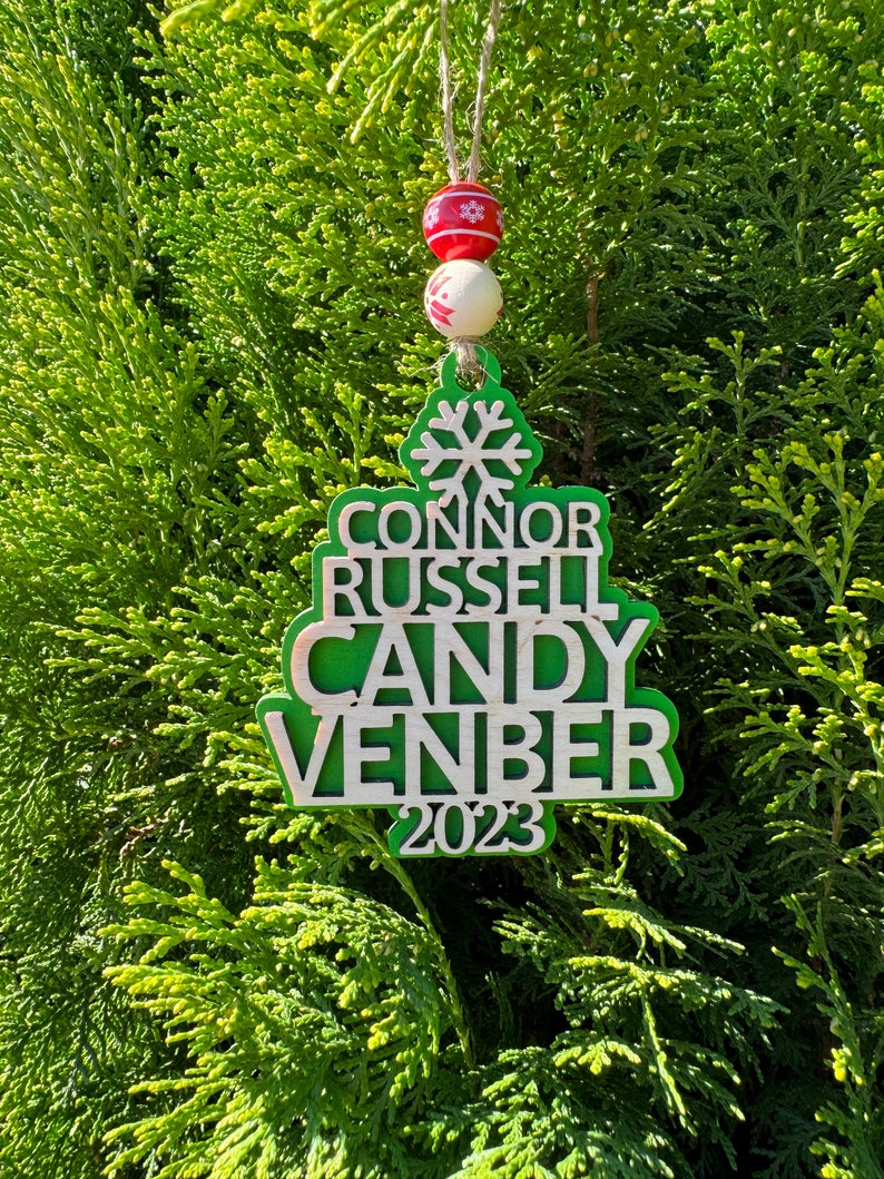 Custom Christmas Tree Name Ornaments 2023,Personalized Wooden Christmas Tree Ornaments,Gift for Family,New Year Gift,Handmade in USA