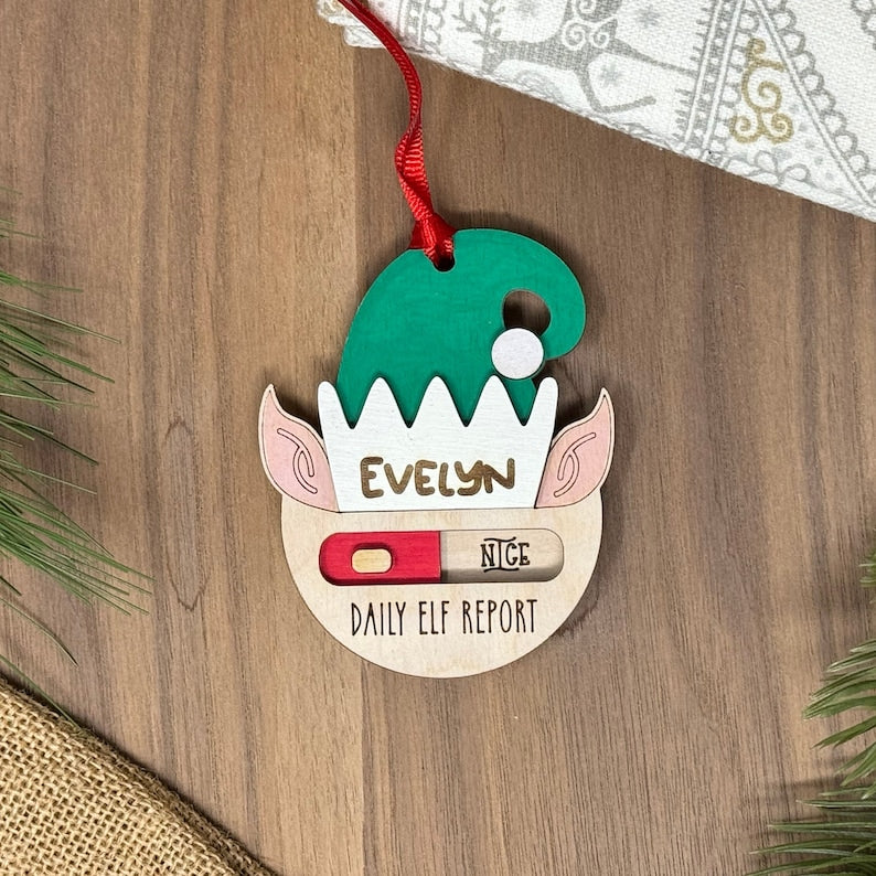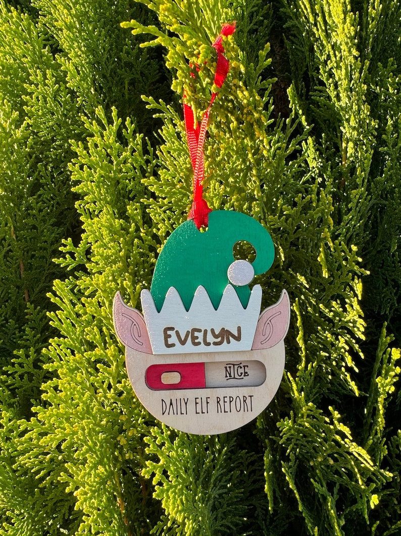 Custom Name Elf Report Ornament, Childs Elf Ornament, Report to Santa Ornament,Handmade in USA,Gift for Kids