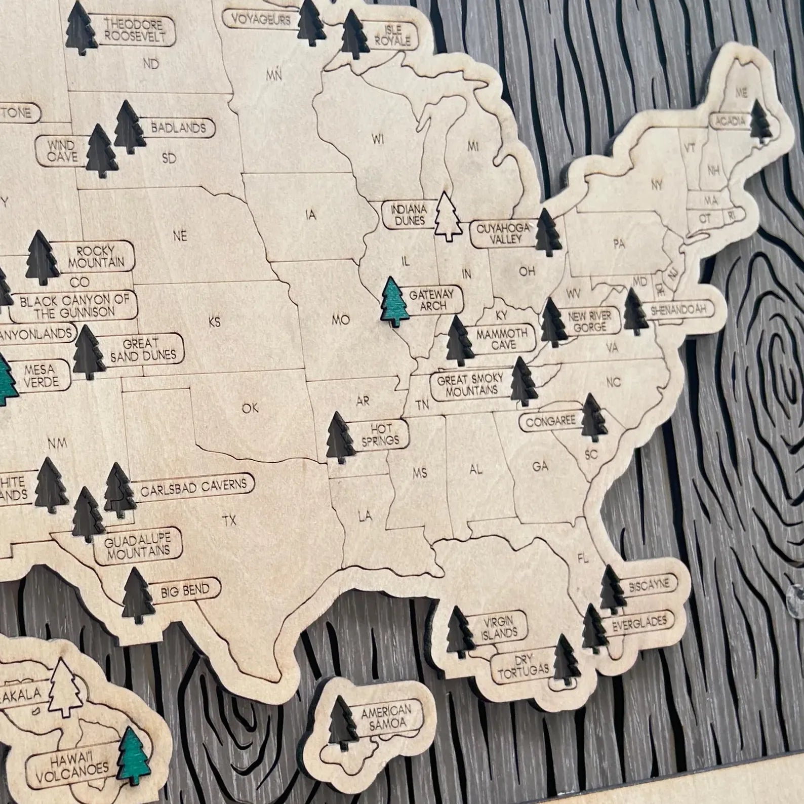 Custom Wooden US National Parks Travel Map (Gray Oak Back)