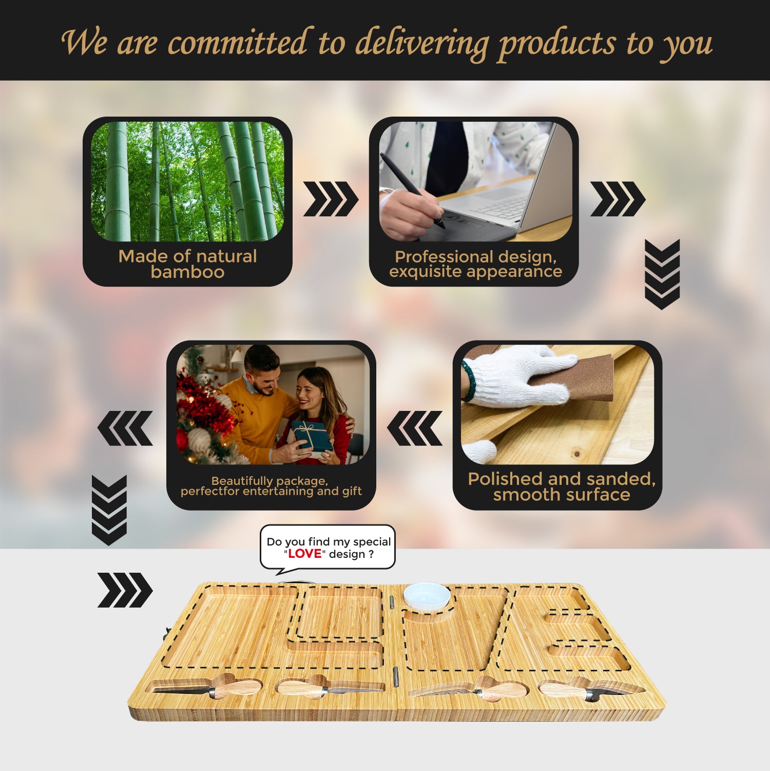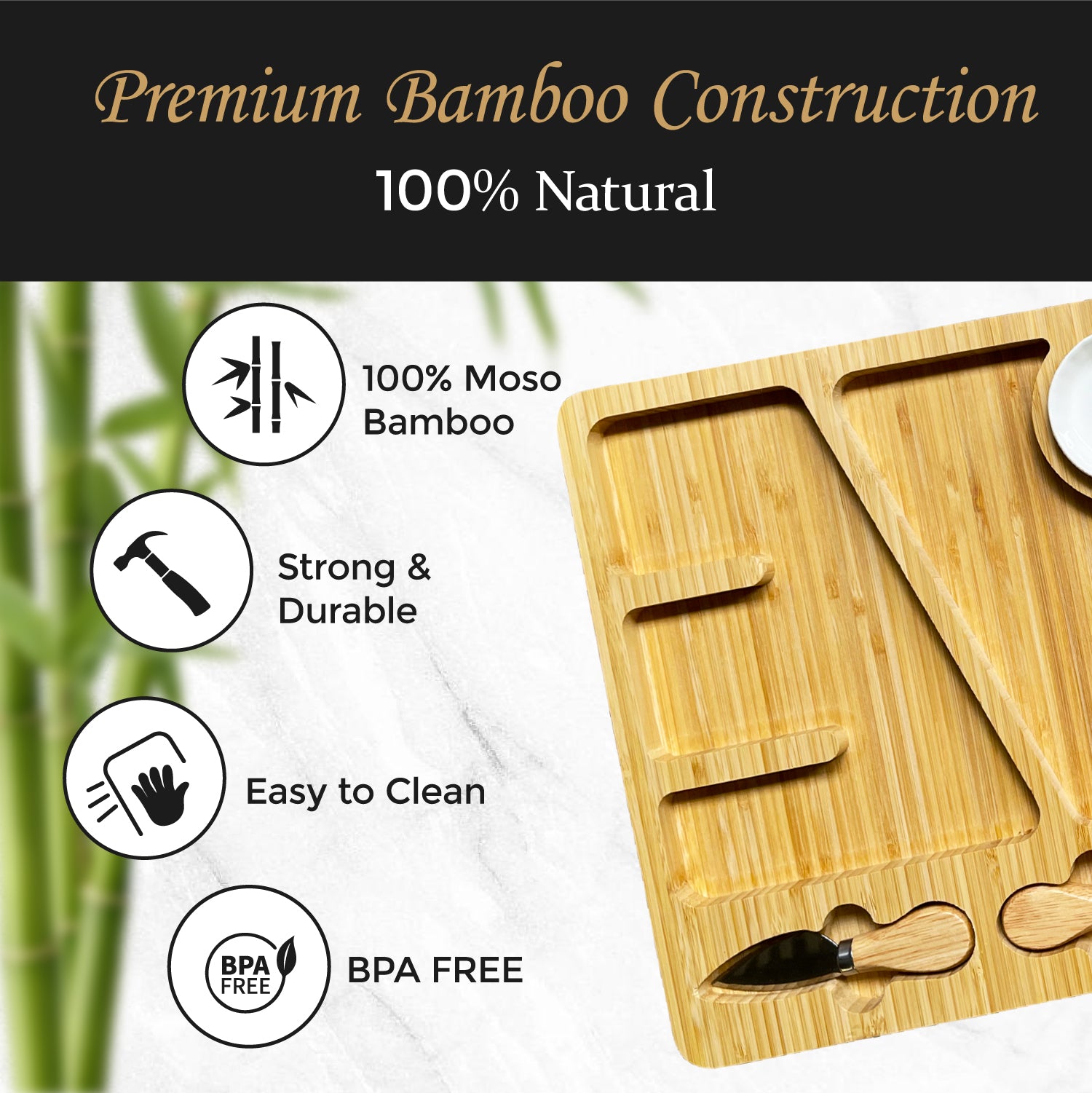 Made from sustainable bamboo—non-toxic, BPA-free, and odor-resistant. A long-lasting, eco-conscious choice for stylish and practical hosting.