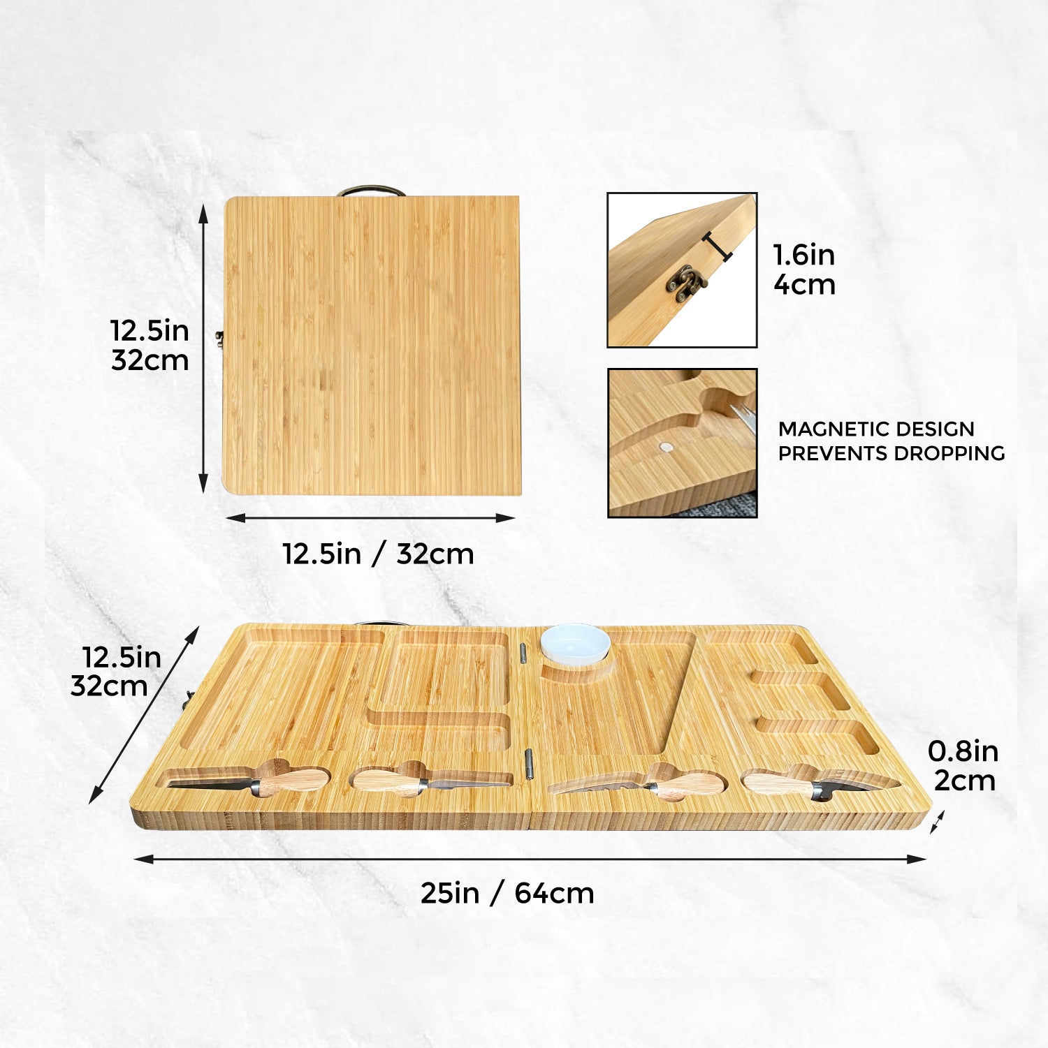 Fold Charcuterie Board Set, Cheese Board, 25" x 12.5" x 0.8"