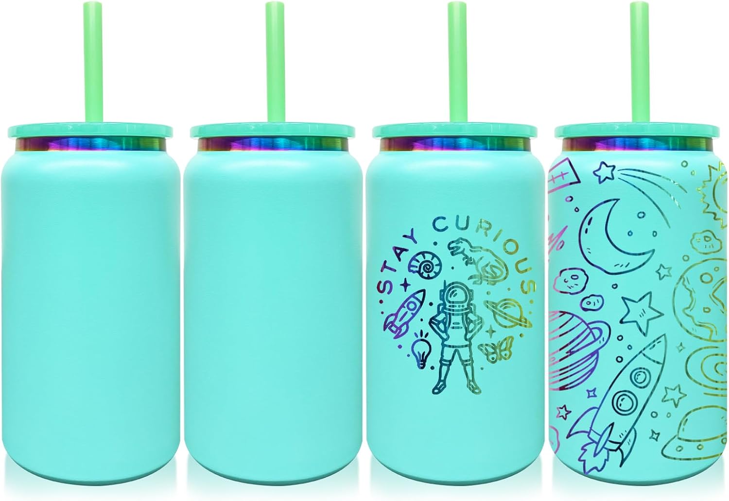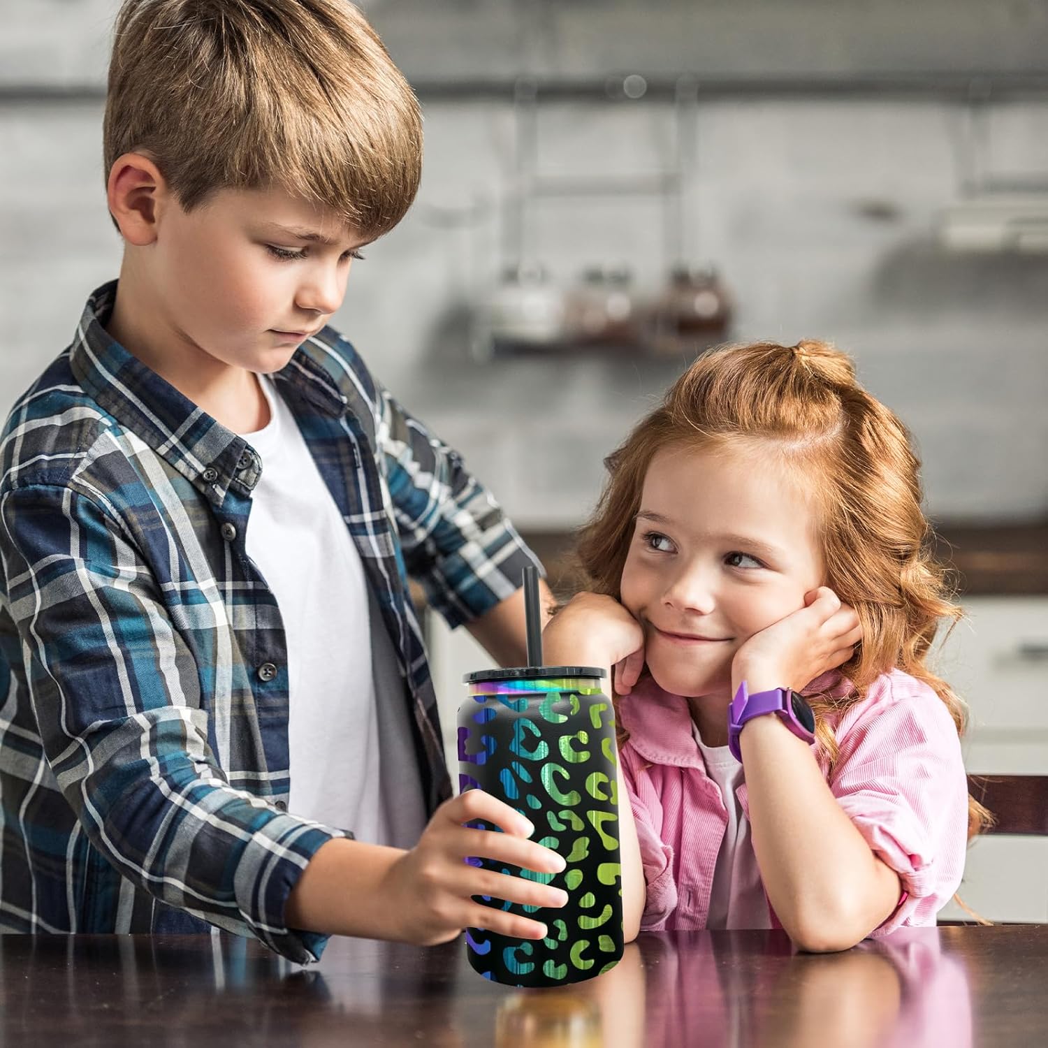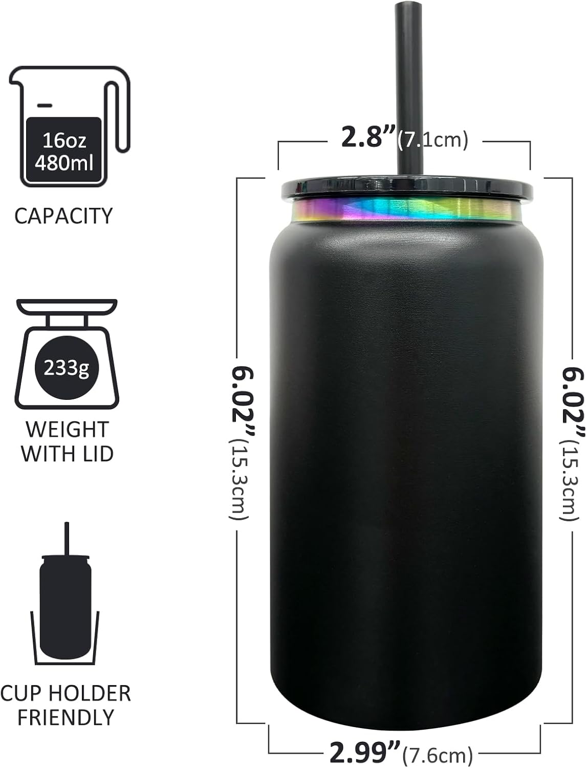 16oz Glass Cups with Lids and Straws Stainless Steel Tumbler