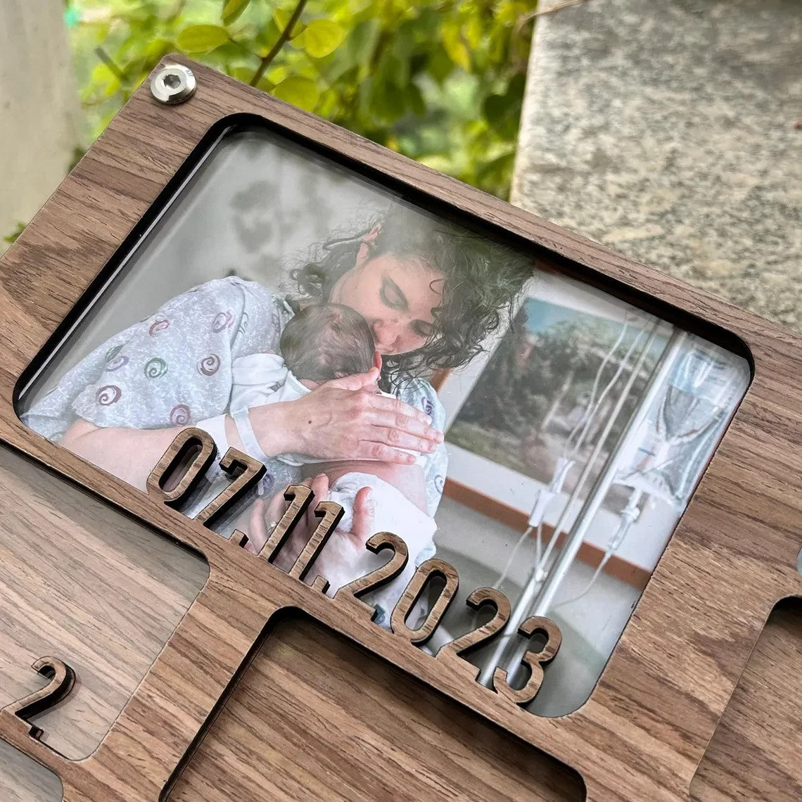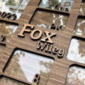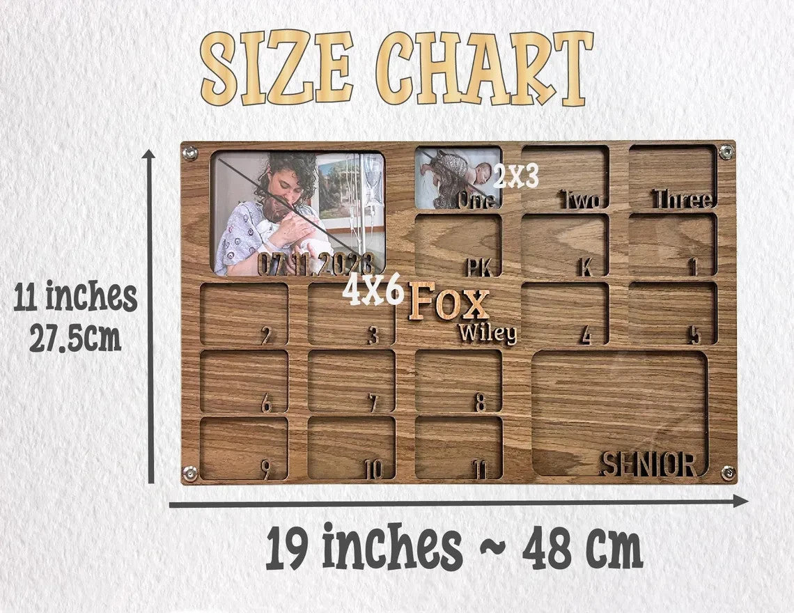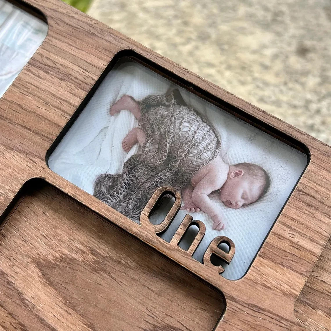 After receiving customers feedback, I have created this frame specifically designed for landscape photos. The large slot is perfect for 4''x6'' photos, while the small slot is ideal for 2''x3'' photos. This versatile frame allows you to display your favorite memories in different sizes, adding a touch of elegance to any space. Crafted with attention to detail, this frame is made from high-quality materials to ensure durability and longevity. Showcase your cherished moments with our innovative and stylish frame, designed to enhance the beauty of your photographs. Specification📏 SIZE Length: 19 inch ~ 48 cm Width: 11iinch ~ 27.5cm Photo Slot: small slot suited for 2''x3'' photo big slot suited for 4''x6'' photo Material: High Quality Plywood & Clear Arcylic. Personalization Frame color Date, Name, Name Style & Name Color How to put a photo in a picture frame? Please loosen the screws and paste the photo in the corresponding frame on the bottom layer, then cover it with the acrylic board and top board, and tighten it with screws. PACKAGE INCLUDED 1* Picture Frame + 1* Wall Hanger + 4* Chicago Screws NOTE: Please note that the actual products may have slight variations in detail due to the nature of handcrafted items. Due to variations in lighting conditions during photography and differences in screen settings, the actual color may differ slightly from the images.