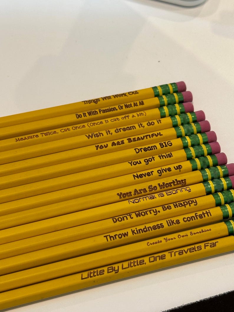 As our engraved pencils are made to order and not mass-produced by machines, please note that the placement of the name or phrase may vary slightly on each pencil. However, rest assured that we always strive to ensure that the engravings are of the highest quality and uniform across each pencil.