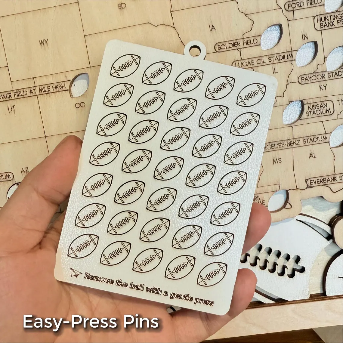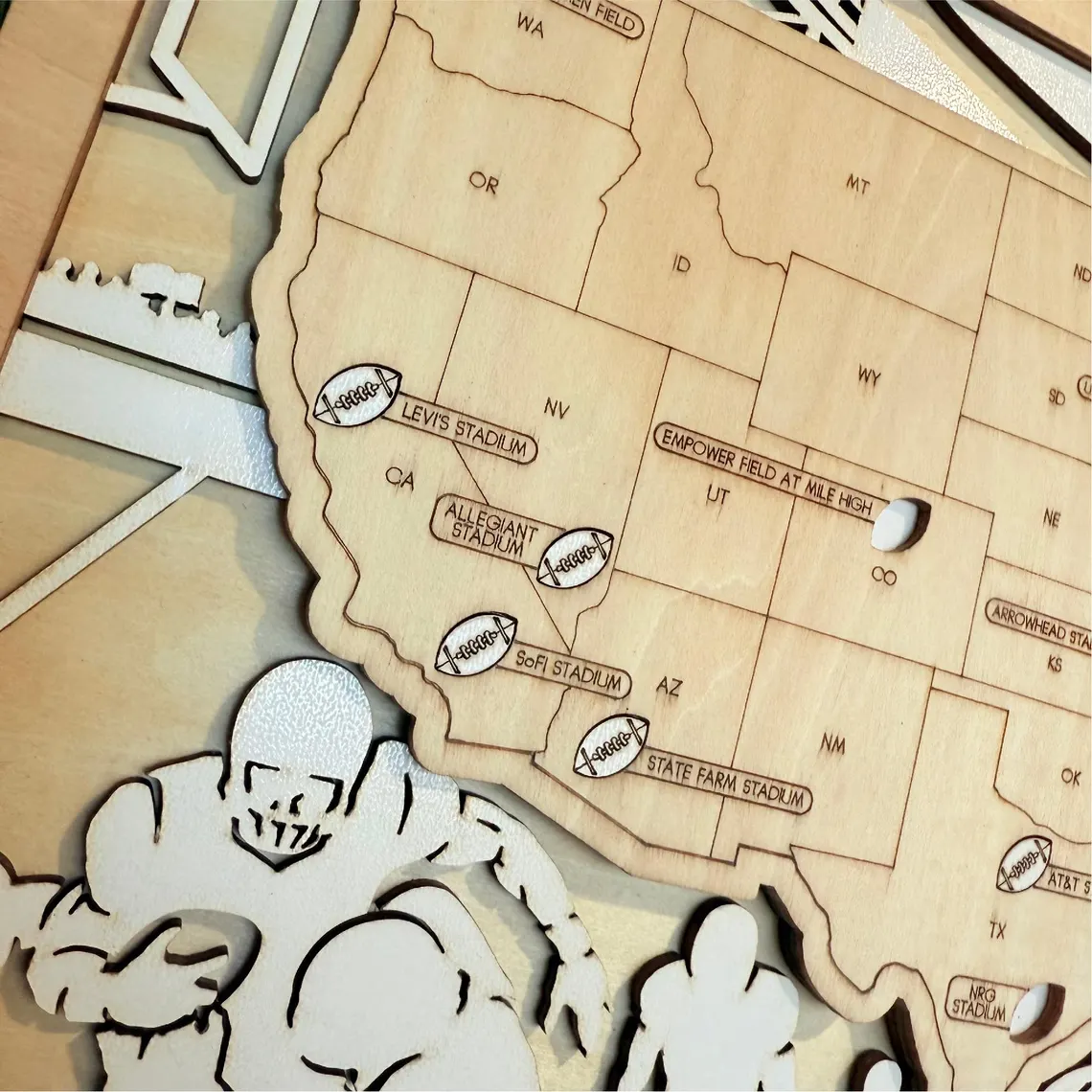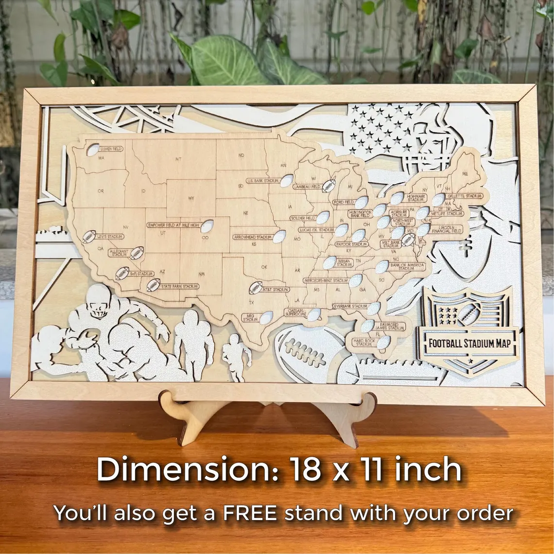 This personalized wooden NFL stadium travel map is a must-have for die-hard football fans—it lets you mark off every iconic NFL stadium you’ve visited, turning your game-day road trips and tailgating adventures into a tangible, wall-worthy display. Customize it with your name, a favorite team slogan, or a special memory (like “My Super Bowl Stadium Tour”) to make it uniquely yours, while the high-quality wood construction ensures it’s sturdy enough to preserve your NFL memories for years. The detailed U.S. map layout clearly highlights each stadium’s location—from Lambeau Field’s legendary frozen turf to SoFi Stadium’s modern grandeur—so you can easily track your progress as you check off every NFL home. With three size options (medium, large, extra large), it fits perfectly in any space: hang it in your man cave, home office, or game room to show off your football pride. Beyond a personal keepsake, it’s an unbeatable gift for fellow NFL enthusiasts—ideal for birthdays, Father’s Day, holiday gifting, or surprising someone planning an NFL stadium road trip. It doesn’t just celebrate their love for football; it gives them a meaningful way to document their passion, making every glance at the map a reminder of thrilling touchdowns, roaring crowds, and unforgettable game days.