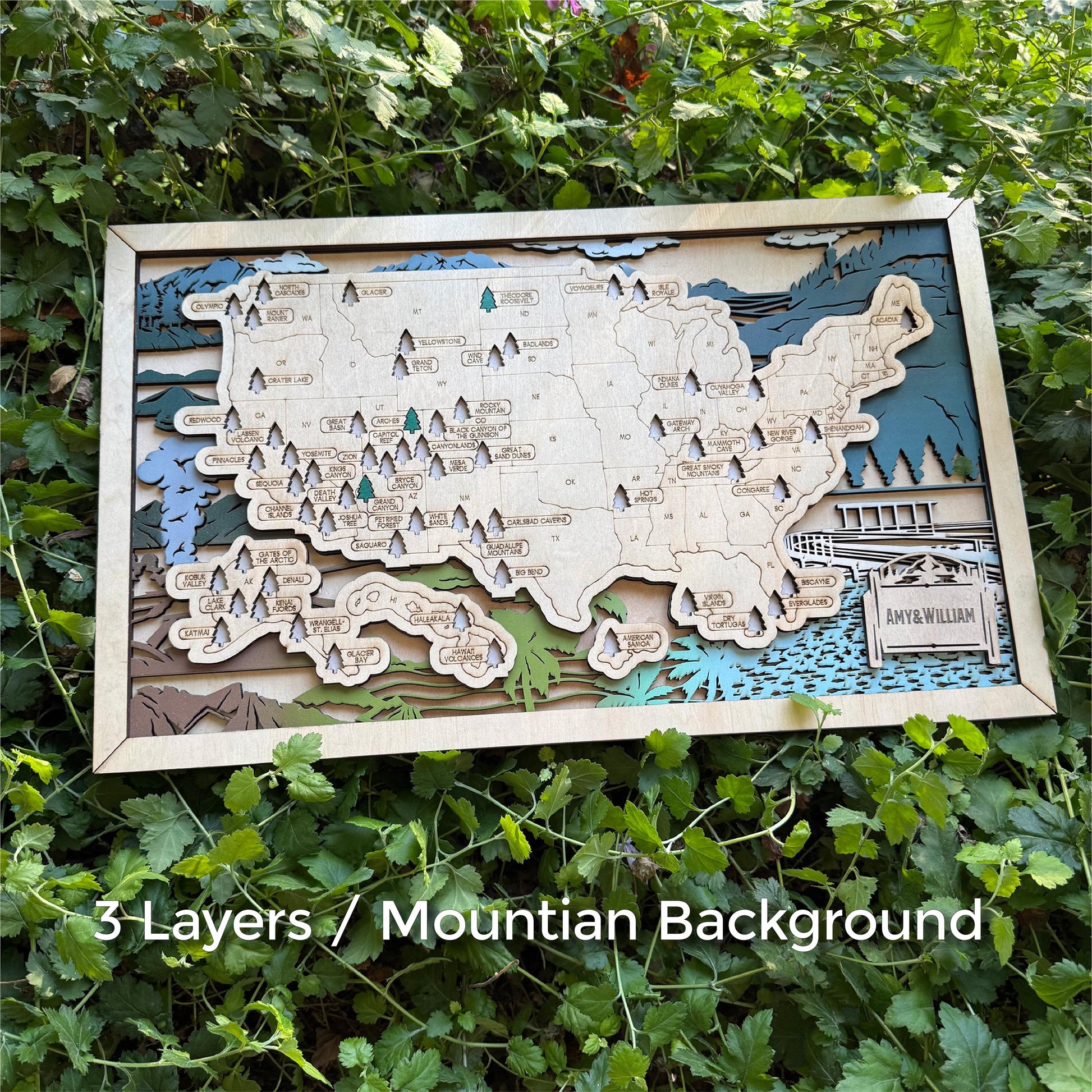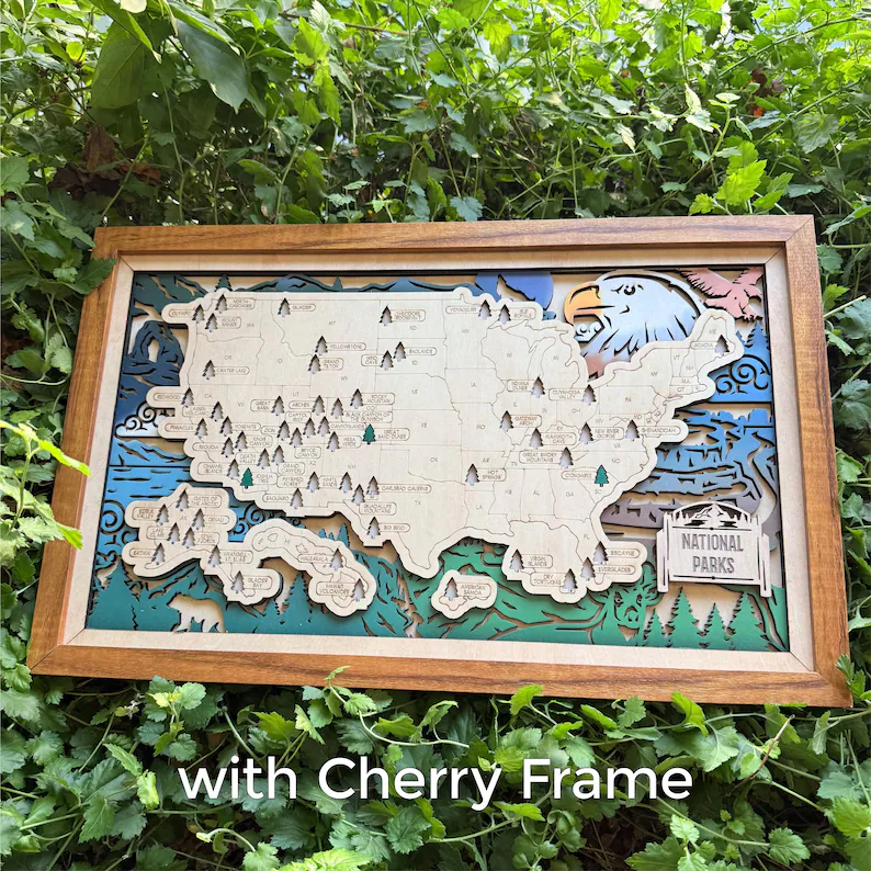Between the 3-layer design’s bottom layer and map, intricate laser-cut patterns create a stunning 3D effect. The map highlights all U.S. national parks (mainland, Alaska, Hawaii), and included green tree icons let you mark visited parks. Unlike basic checklists, this piece works as rustic home decor (offices, living rooms, cabins) while inspiring future trips. Durable, lightweight, and easy to mount, it’s a perfect gift for hikers, retirees, or newlyweds. Turn your travels into a legacy with this functional heirloom that honors America’s natural beauty!
