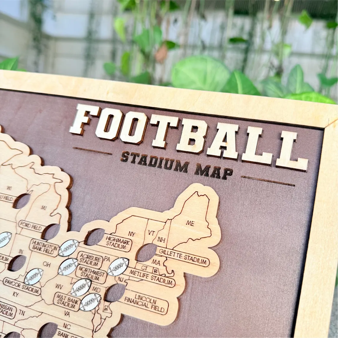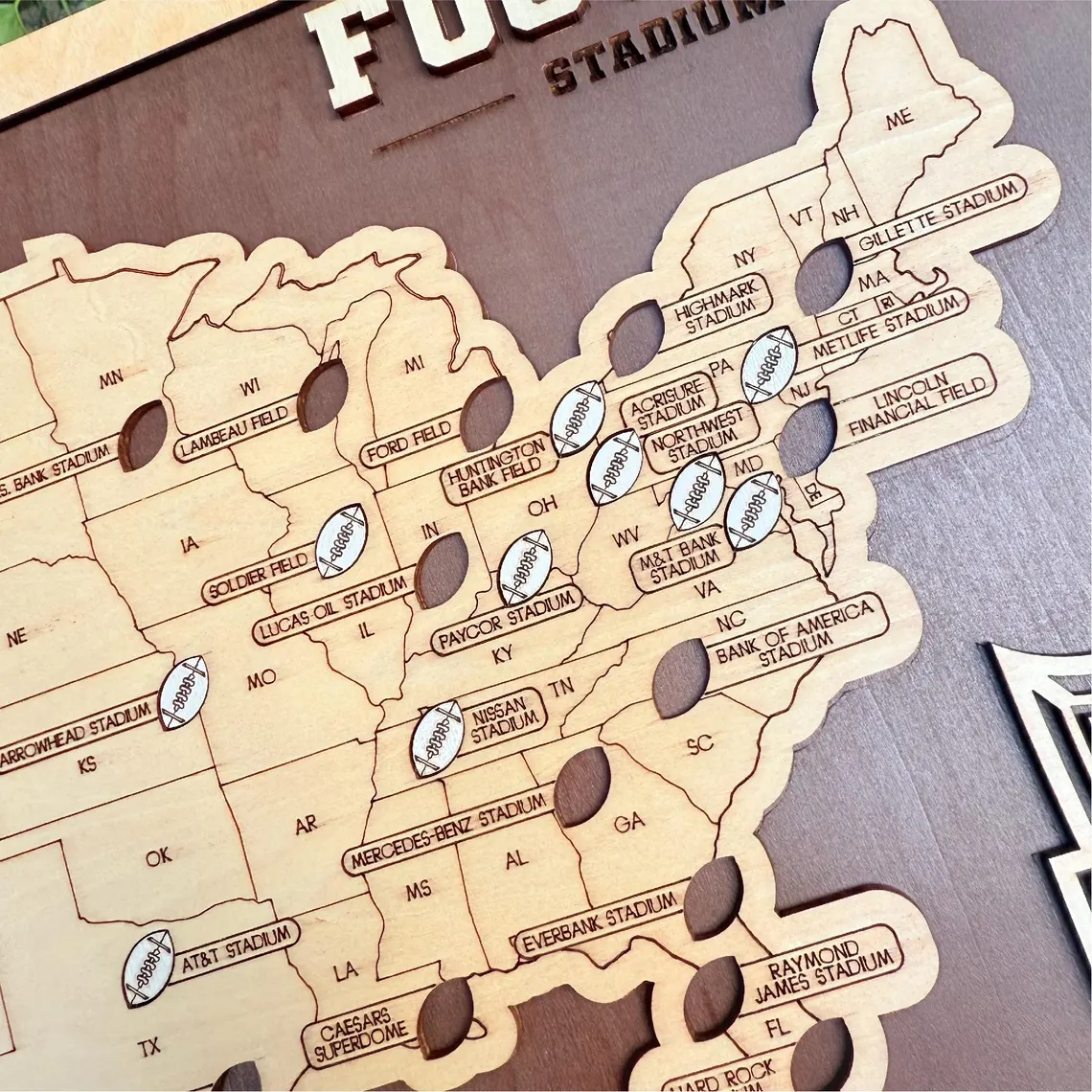 Made from premium, durable wood, the map features clear details marking every U.S. NFL stadium, so you can easily track and display your football arena adventures. Choose from three sizes (medium, large, extra large) to fit your home office, man cave, game room, or living area.
