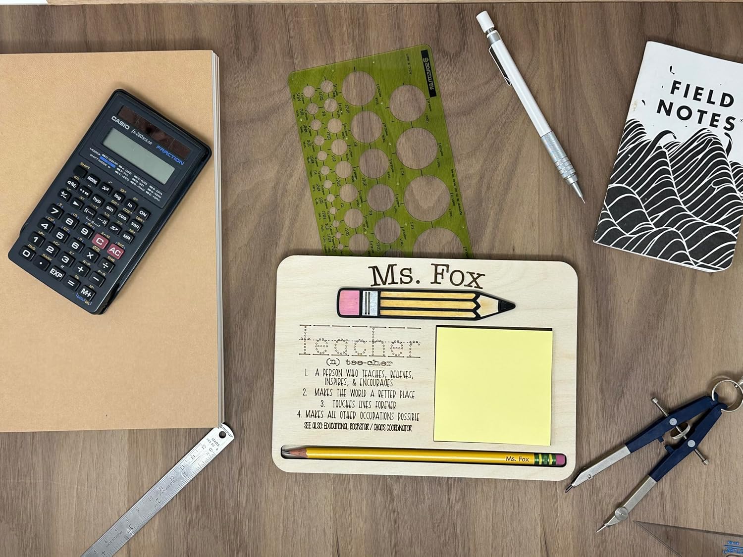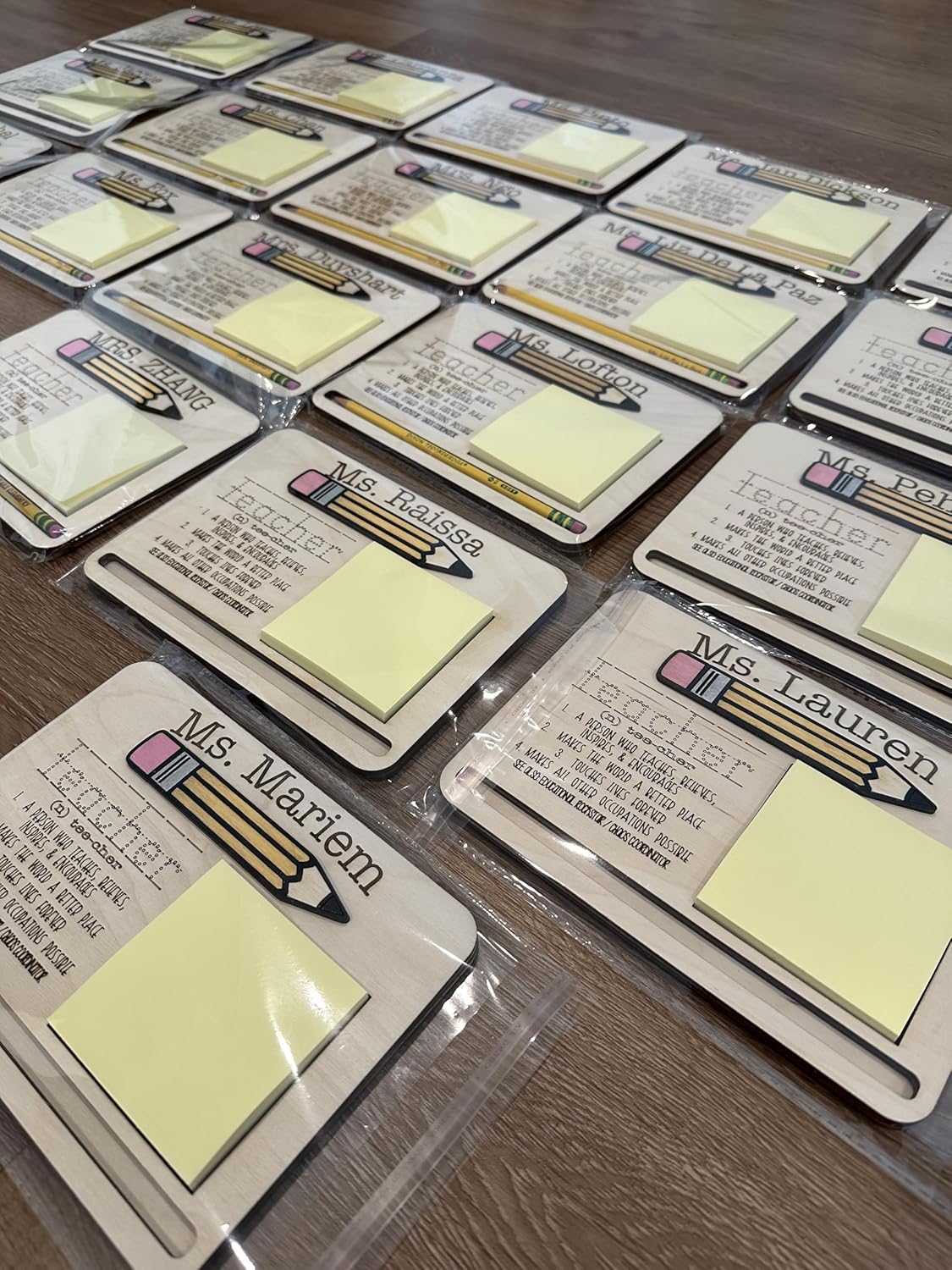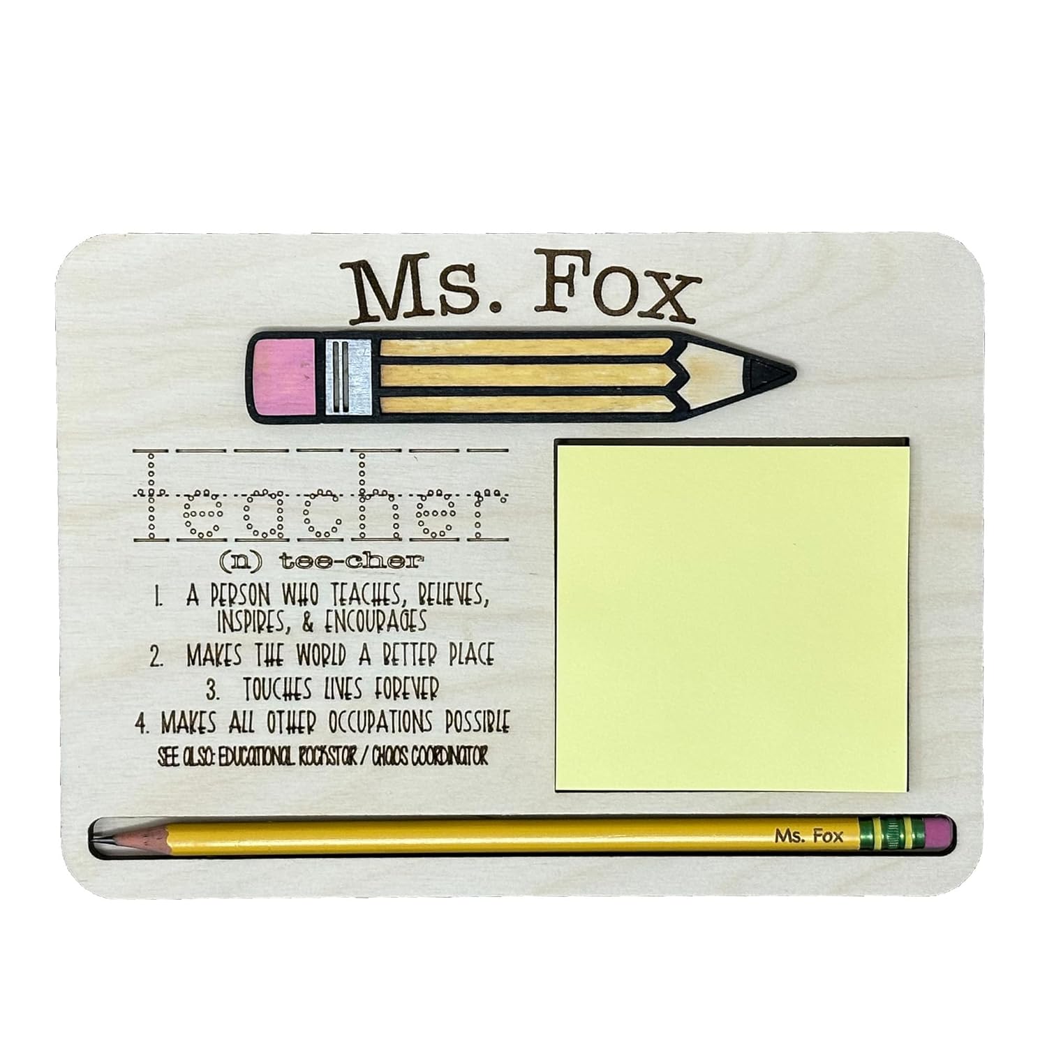 Personalized Stick Note Holder,Wooden Personalized Teacher Gifts School Desk Sticky Note Holder,Teacher Appreciation Gift for Women Men,Personalized Teacher Gift,Back to School Handmade Made in USA