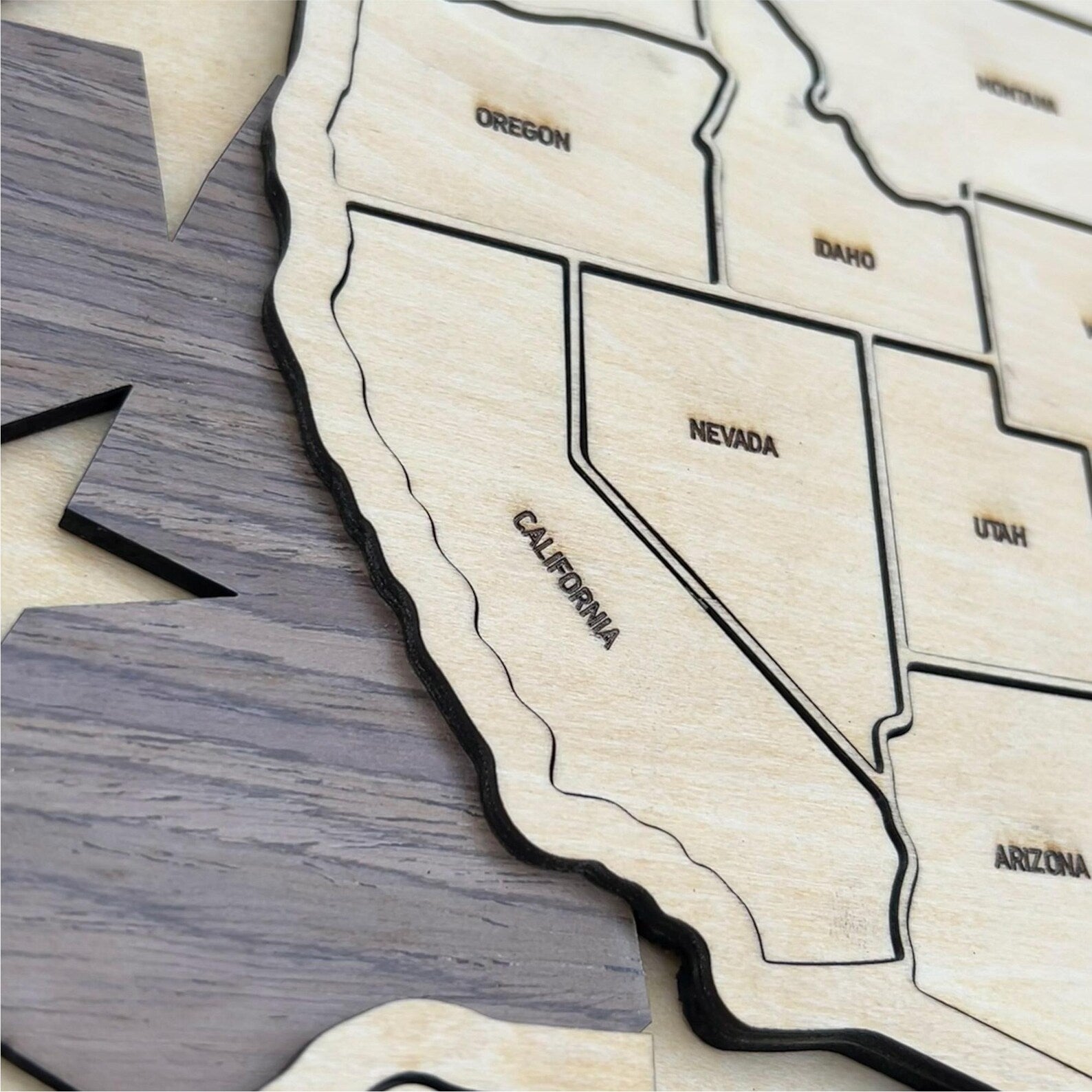 Personalized Wooden USA Travel Map - 50 States Checklist