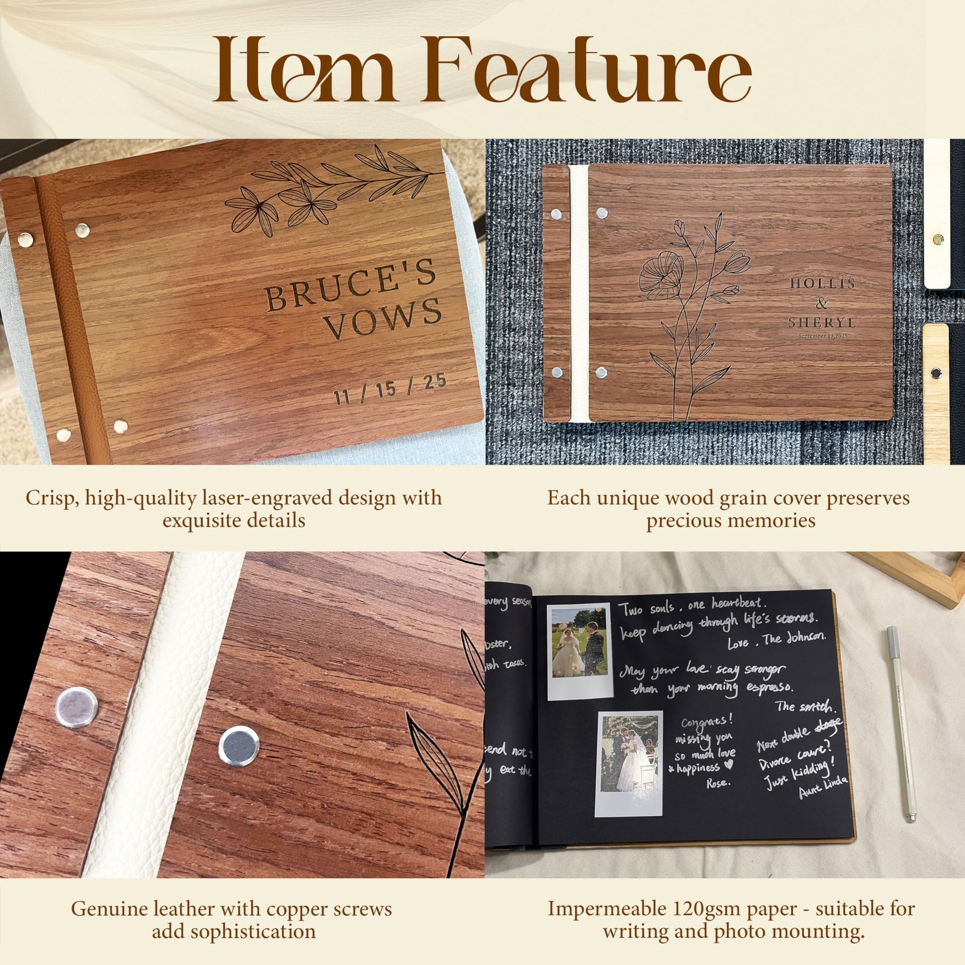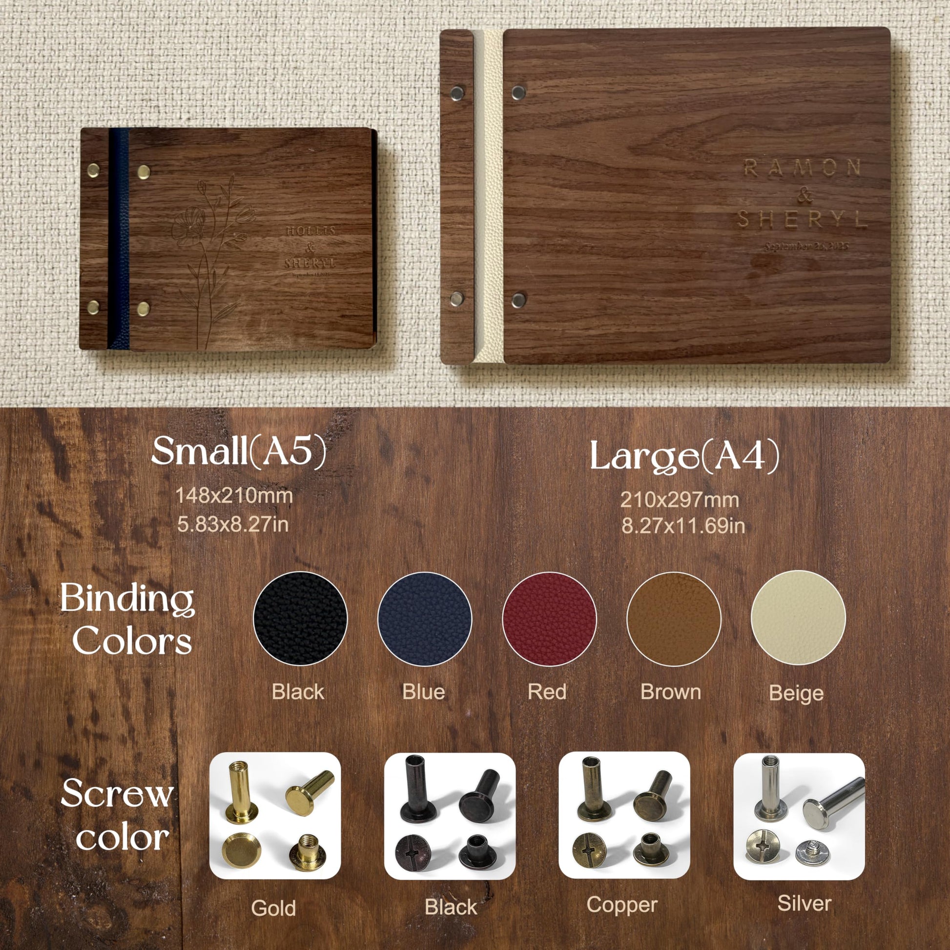 Small(A5) Personalized Wedding Guest Book and Photo Albums - Walnut Wood Cover, 6'' x 9''