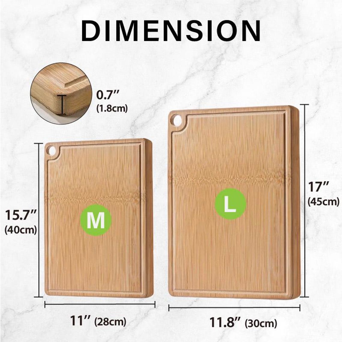 Whole Bamboo Cutting Board 15.7" x 11" x 0.7"/17.7" x 11.8" x 0.7"