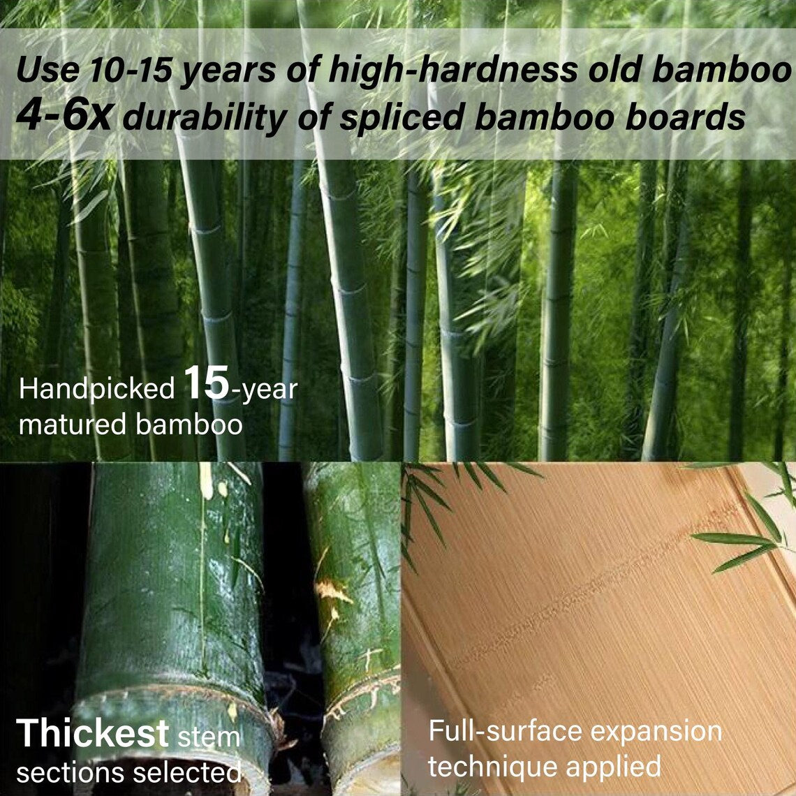100% solid bamboo (no glue, no gaps!)