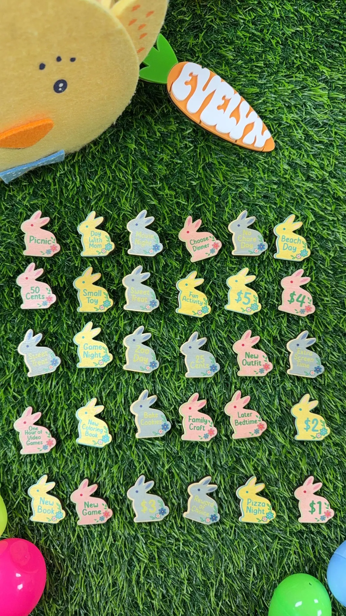 This set of 30 Easter tokens is made using safe UV printing and cut from 1/8 inch thick birch plywood. Original designed to fit perfectly inside standard-sized plastic Easter eggs, these tokens offer a delightful non-candy activity for Easter egg hunts or can be used as basket stuffers/fillers. The best part is that they can be reused year after year, adding a touch of fun to your Easter celebrations!